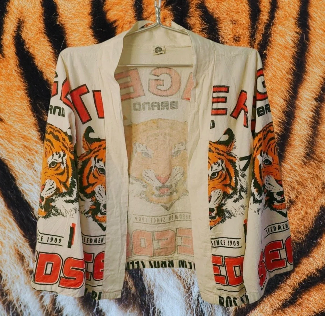 Haley: “This Tiger Brand seed sack jacket is made from old seed bags. It’s like a piece of American history. The graphics are incredible - it’s a piece of art. It was shockingly only $7!”
